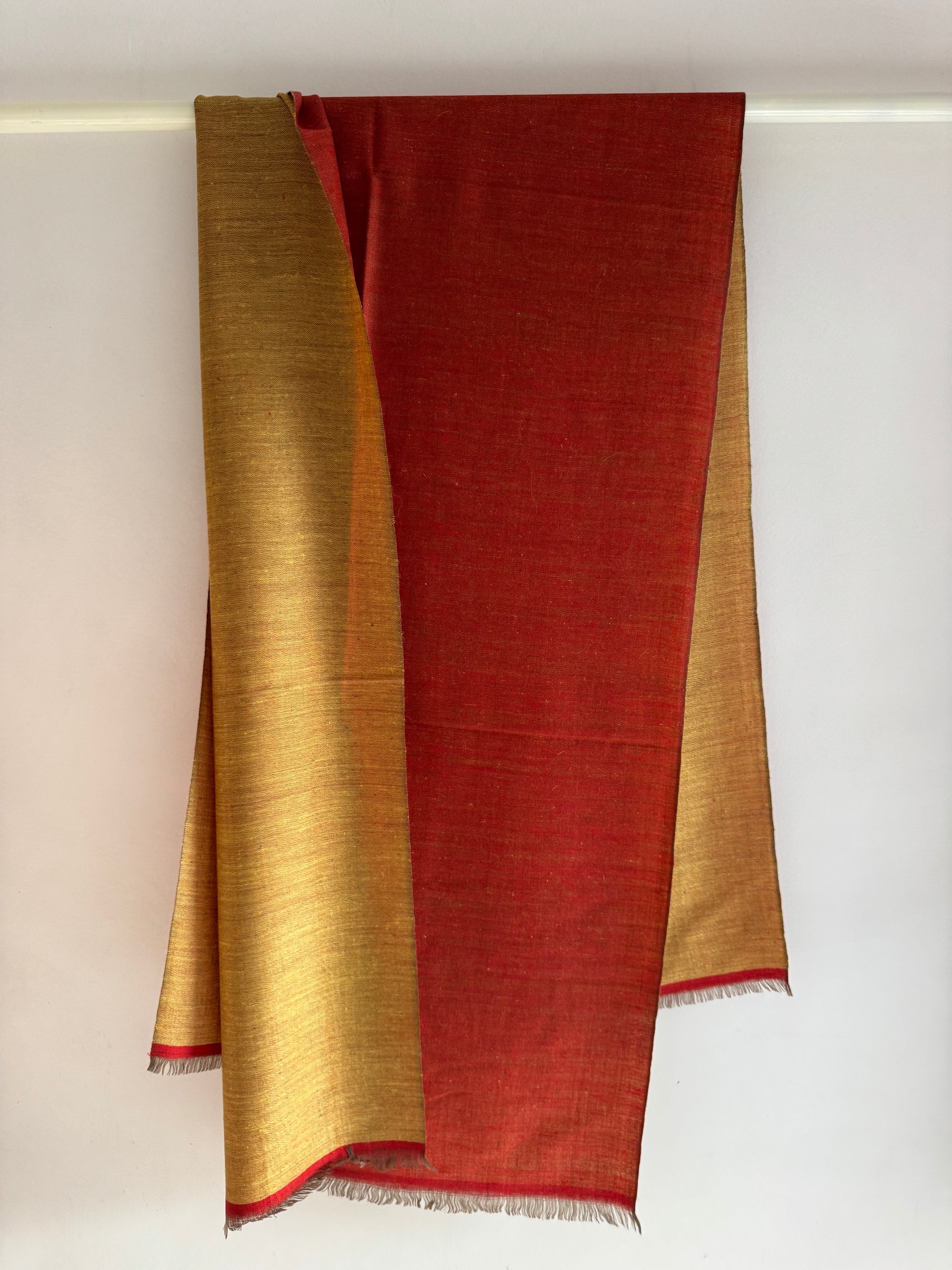 This beautiful reversible stole is handloom woven from the finest pure pashmina, featuring rich, elegant colours on both sides. Crafted in Kashmir using premium cashmere fiber sourced from the Changra goat of Ladakh, it offers exceptional softness, warmth, and timeless style.